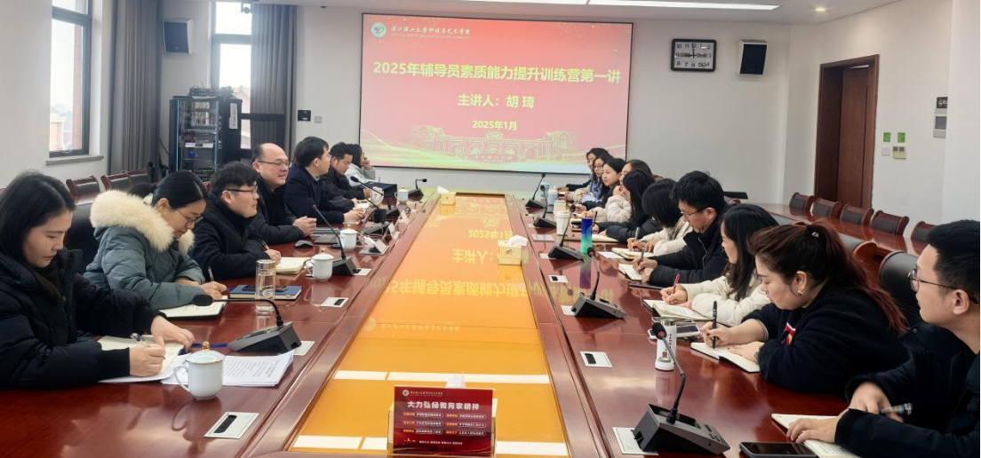 为深入实施“时代新人铸魂工程”,全面提升学院思想政治工作队伍素质能力,切实推动思想政治工作高质量发展,1月8日,学院在行政楼524会议室开展2025年辅导员素质能力提升训练营(第一期),院长胡琦、党委副书记方水明出席,各二级学院党总支副书记、学工办主任和学工部辅导员参加培训。
