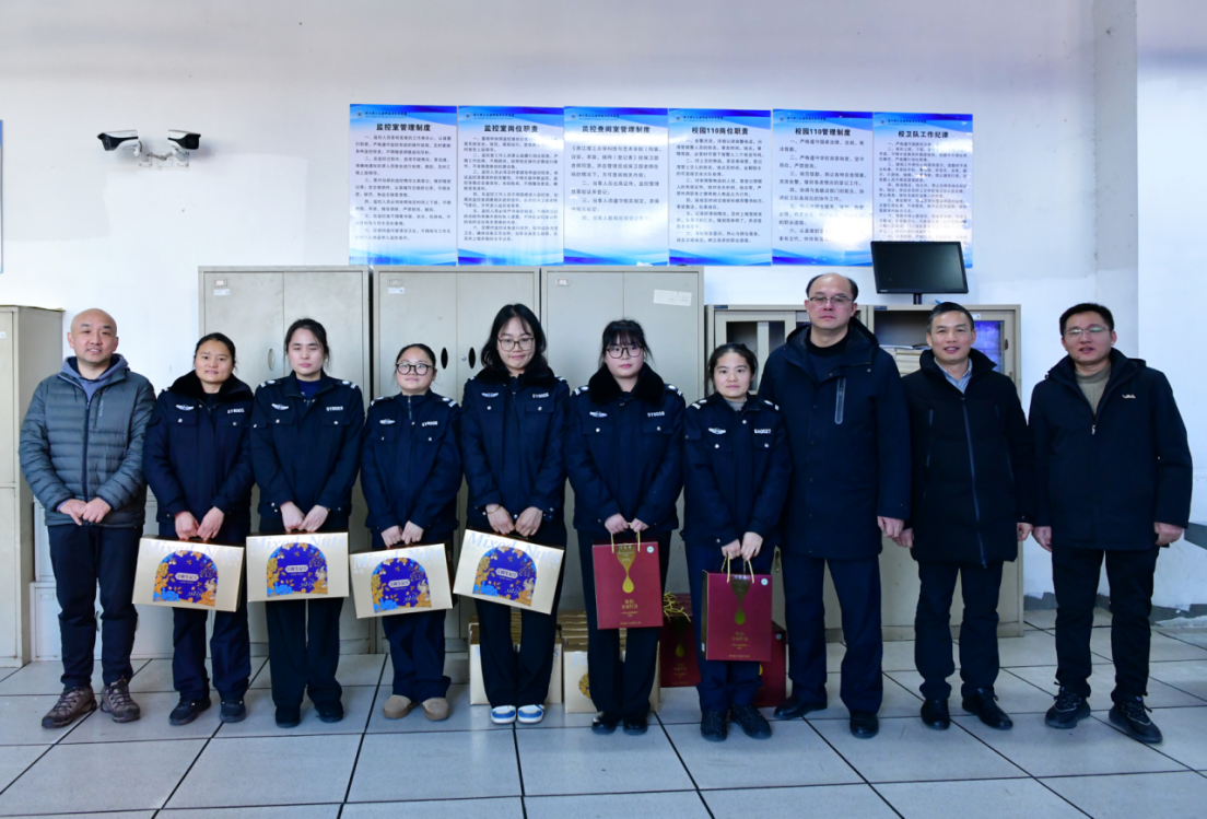 胡琦一行先后来到后勤服务中心、监控室、南二门岗亭,看望慰问后勤、维修、安保等值守工作人员并同大家亲切交谈。胡琦详细了解了寒假校园安全管理事宜,明确了假期安全管理工作的重点,强调要保障校园假期平稳运行、过好安定祥和的新春佳节。学院领导还关心了解了值守教职工的生活与身体健康,并送上了新年祝福,叮嘱大家要注意劳逸结合,保重身体。