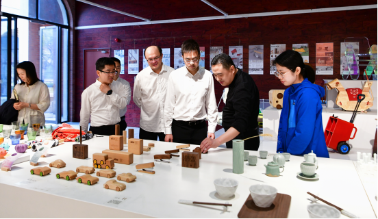 会前,阮程华一行参观了校园及艺术设计作品展厅。