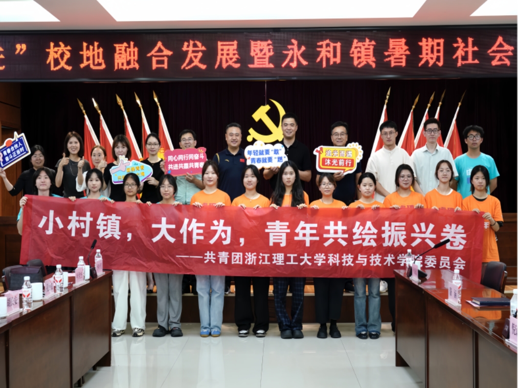 走访慰问期间,我院联合上虞区永和镇人民政府召开“虞理共进”校地融合发展暨永和镇暑期社会实践团队活动座谈会。永和镇党委书记倪诚成,党委副书记、镇长陈天麟出席会议。