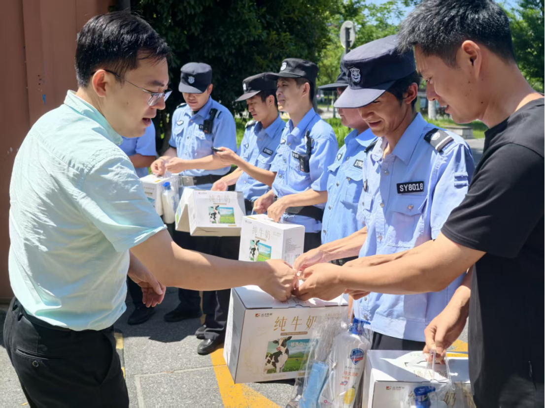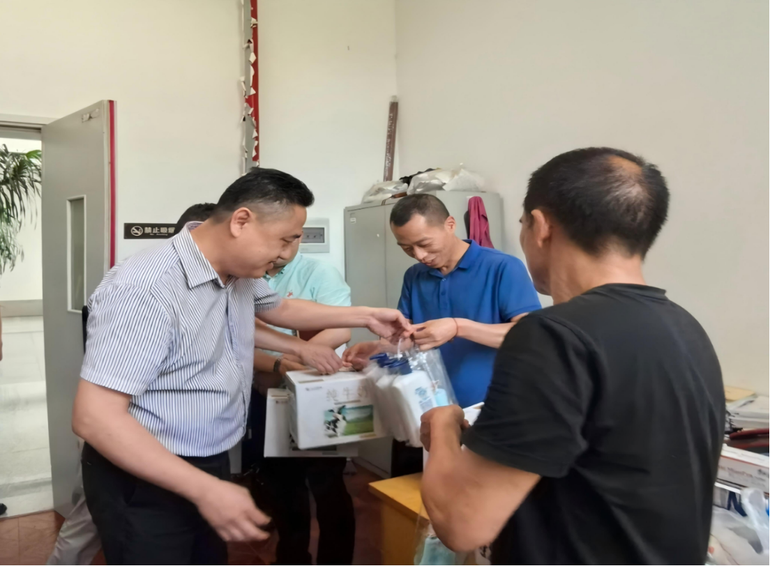 7月4日,骄阳似火,热浪袭人,但关怀与温暖如清风拂面。我院党委书记陈德虎、党委副书记方水明、副院长阳盛益率队,带着对教职工的深切关怀,先后前往维修高配、南二门保卫亭、监控室等地,看望慰问在暑期坚守岗位的教职工,为他们送去丝丝清凉与贴心关怀,以及实用的防暑物资。