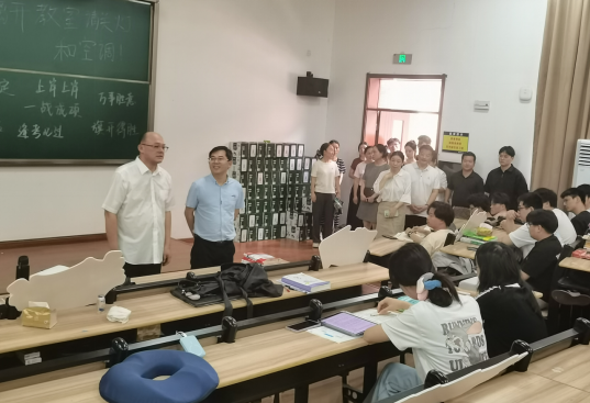 在考研自习室,学院领导对同学们不畏酷暑、刻苦学习的精神给予高度肯定。胡琦与同学们亲切交流,了解他们的学习生活情况,并对他们提出三点期许:一是要保持良好心态,用恒心与信心积极面对考研;二是要合理规划时间,注意劳逸结合,保持阳光心态;三是要将理想付诸实际,通过持之以恒地努力,实现自己的梦想。他表示学院始终是同学们的坚强后盾,希望大家安心备考,以饱满的热情和健康的体魄迎接考试。