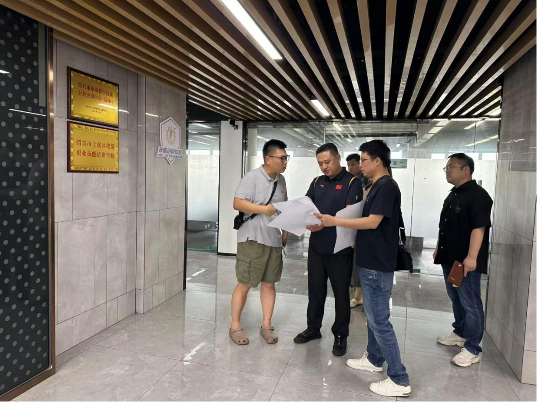 为进一步深化产教融合,深入对接上虞区“4+4”现代化产业体系,有序推进杭州湾数字智能产业学院建设,7月31日,党委书记陈德虎带队前往e游小镇7号楼产业学院现场察看建设情况。