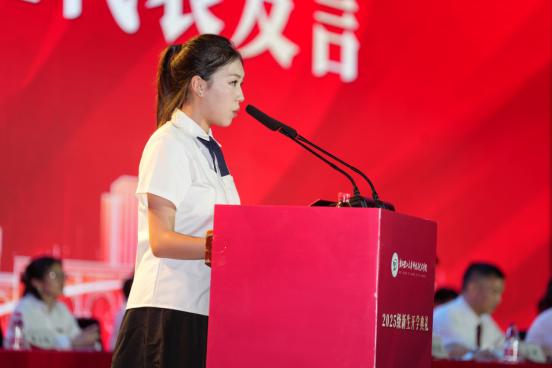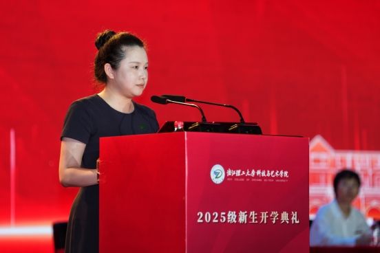2012届国际经济与贸易专业校友、千年舟新材科技集团股份有限公司副总经理陆丽婷代表全体校友向新生致以诚挚欢迎,并以 “成己”“达人”“求实”“创新”为关键词送上寄语。她鼓励新生在科技与艺术学院播撒梦想种子,以勤奋为壤、坚持为水,努力成长为以理想为根、担当为干、作为为叶的时代栋梁。