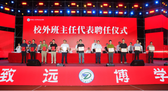 主席台领导为校外班主任颁发聘书,学院“双轨制班主任共育”模式再添新力。这一特色模式凝聚社会智慧与校园力量,为学子搭建起广阔实践平台,以产教融合为路径、以知行合一为准则,让育人使命在校园与社会的协同中稳步前行。