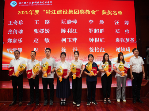 党委副书记方水明为2025年度“舜江建设集团奖教金”获奖代表颁发证书。