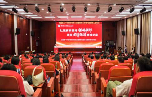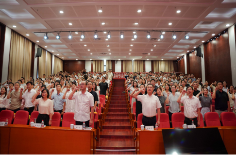 在新教师入职仪式上,丁福军带领全体与会教师进行集体宣誓。