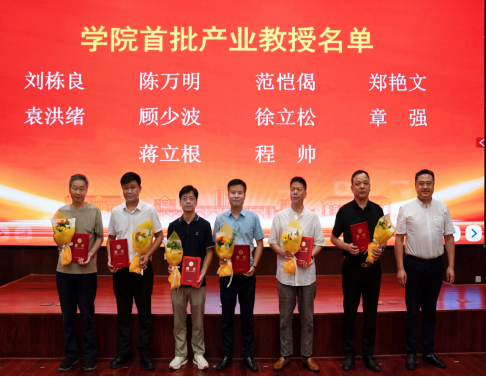 陈德虎为首批产业教授代表颁发聘书。学院首批聘任产业教授10人。