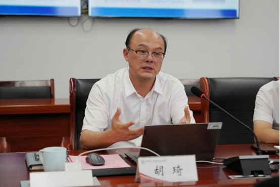胡琦代表学院对赵水荣一行的到访表示热烈欢迎,并系统介绍了学院的发展全貌。他从办学历史、学科布局、师资建设、社会服务等维度切入,重点分享了我院在应用型人才培养、产教融合创新方面的实践优势,展现了学院的办学特色和发展实效。