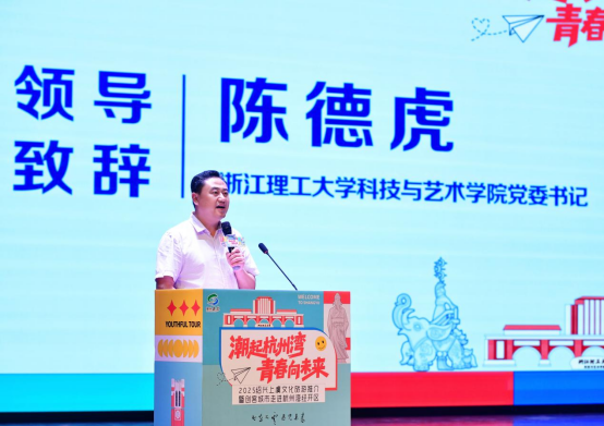 陈德虎指出学院自扎根上虞以来,始终以“服务地方发展”为使命,与这座城市、这片湾区同呼吸、共成长。多年来,学院与地方、企业共建实习实训基地,推动“产学研用”深度融合,越来越多的毕业生选择留在上虞、服务湾区,成为产业升级的“生力军”、城市发展的“建设者”。他希望科艺学子把这次活动当作与上虞相识的“初见之约”、与未来对话的“启蒙之课;希望企业代表们以本次活动为纽带,与学院深化合作;希望学院各部门积极联动文旅部门,深挖文化资源、推动创意转化,对接更多优质资源,为青春赋能城市发展搭建更广阔的平台。