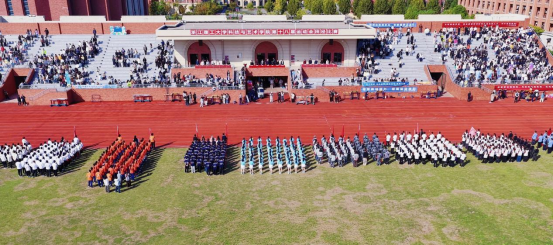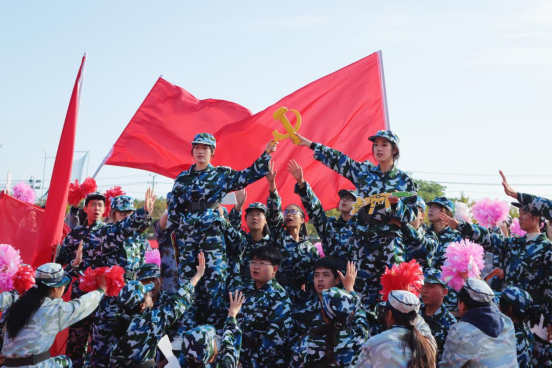 入场式上,11支主题鲜明、气势昂扬的方阵依次走过主席台,成为开幕式上一道亮丽的风景线。学工部组织的国旗方阵庄严引领,纺织服装学院执旗的红旗方阵如火焰燃烧,人文与国际交流学院(马克思主义学院)手持绚烂花束的鲜花方阵绽放青春活力。各分院结合专业特色与时代主题,精心策划了内涵丰富的主题方阵:纺织服装学院“峥嵘岁月,抗日荣光”方阵以服饰与造型再现历史风云;信息与控制学院“丝韵忆峥嵘,铭记抗战路”方阵巧妙融合科技元素与红色记忆;经济管理学院“青春逐梦,经管筑雄安”方阵展现新时代建设者的抱负担当;艺术与设计学院“艺韵星河,创绘璀璨”方阵用艺术语言描绘强国画卷;人文与国际交流学院(马克思主义学院)“强国有我”方阵誓言铿锵,展现青年使命;建筑工程学院“赤心建宇,体育强国”方阵步伐坚定,彰显筑梦力量;此外,由工会组织的“桃李风华”教工方阵和体育教研部组织的“执裁为公,护航梦想”裁判员方阵,也以饱满的精神面貌赢得了全场热烈掌声。各方阵以创意编排与深情演绎,将红色基因、体育精神与专业特色融为一体,展现了科艺师生昂扬向上的时代风貌。
