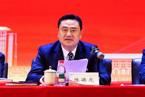党委书记陈德虎讲话,他表示,这次会议是一次承前启后、继往开来的大会,是一次统一思想、凝聚共识的大会,是一次民主团结、催人奋进的大会。他指出,站在新的历史起点上,我们必须胸怀“国之大者”,深刻认识我们所处的历史方位和时代坐标,准确把握高等教育发展的新趋势、新要求,进一步增强责任感、使命感和紧迫感,奋力开创学院事业发展的新局面。他就贯彻落实本次大会精神,提出了三点意见:一是统一思想,凝聚共识,确保发展方向不偏离;二是聚焦关键,锐意改革,破解发展难题不停步;三是以人为本,强化服务,夯实发展根基不松懈。