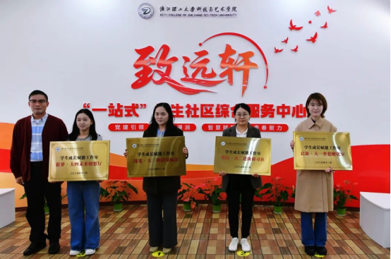 针对学生不同成长阶段需求,学院打造了“启新・大一梦想孵化室” “笃行・大二进阶研习社” “逐光・大三职涯领航站” “跃梦・大四未来创想厅”四大学生成长赋能工作室。阳盛益为四大工作室授入驻牌,这些工作室将为学子提供精准、高效、全面的成长支持。