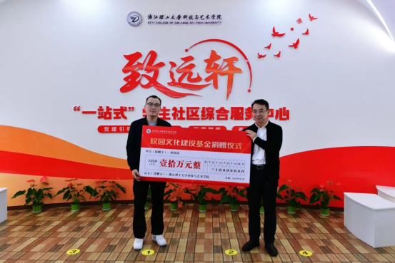 在校园文化建设捐赠仪式上,校友孙国涛以实际行动助力院史馆筹建,丁福军代表学院接受捐赠。此举彰显了校友对母校的深厚情谊,为学院发展注入力量。