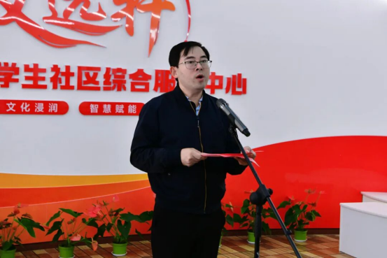 揭幕仪式环节,胡琦、方水明、阳盛益与陈蔚共同为“一站式学生社区综合服务中心”揭幕。红绸缓缓落下,醒目红字闪耀全场,掌声雷动,定格下这一意义非凡的瞬间。