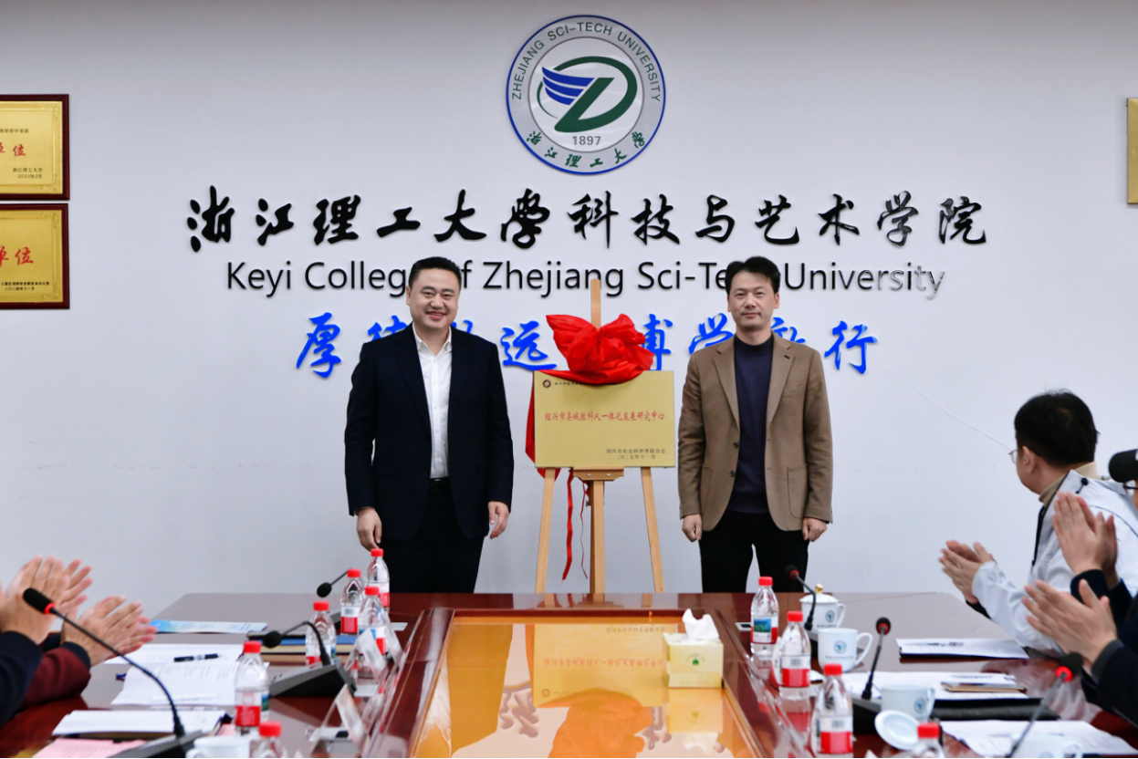 陈杨军与陈德虎共同为“绍兴市县域教科人一体化发展研究中心”揭牌,标志着该中心正式启动运行。
