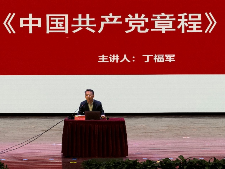 丁福军为入党积极分子培训班学员讲授题为《〈中国共产党章程〉解读》专题党课。他围绕党章结构与内涵,阐释了党章作为党的根本大法的核心地位,系统梳理了党章的修改历程,强调“发展党员必须把政治标准放在首位”,鼓励学员要以党章为镜、为尺、为灯塔,筑牢理想信念根基。