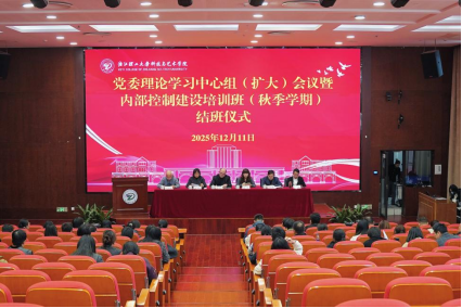 12月11日下午,学院召开党委理论学习中心组(扩大)会议暨内部控制建设培训班(秋季学期)结班仪式。院长胡琦、党委副书记方水明、副院长李传莹、党委副书记丁福军出席会议,纪委书记王吴芳主持会议。会议邀请天职国际会计师事务所(特殊普通合伙)高级经理潘琰作专题培训。