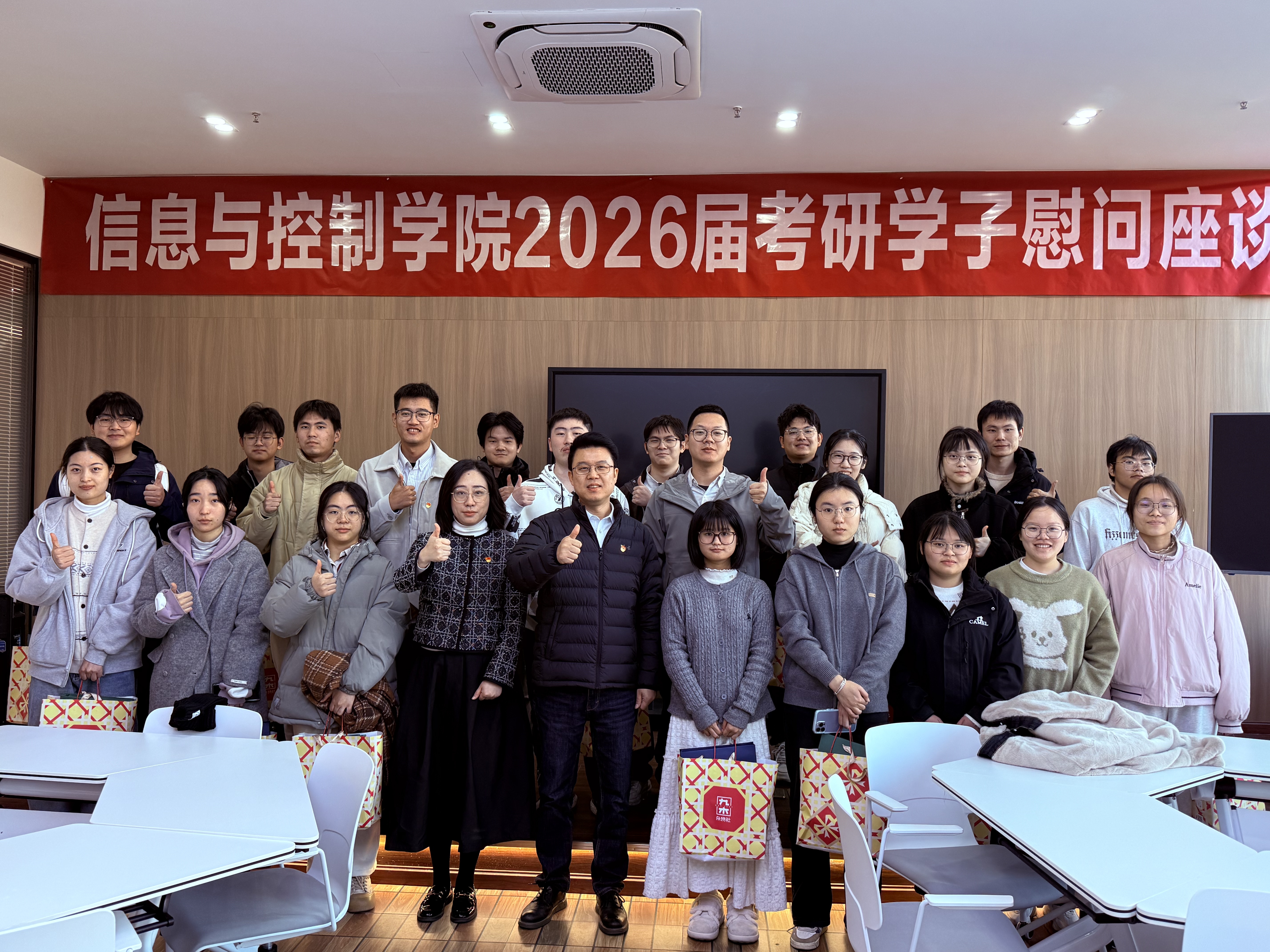 11月26日,信息与控制学院在一站式社区学生中心多功能会议室举行2026届考研慰问,学院党总支书记吴鸿、副书记骆鹿,辅导员项凌柯、王啸天与数十名备考学生参会,通过精准帮扶、物资慰问与交流鼓劲,为考研学子提供支持。