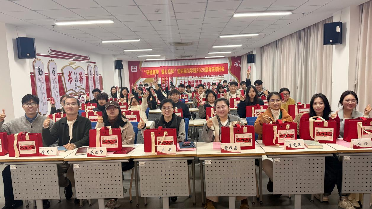 11月24日下午,纺织服装学院在图书馆1012会议室举行了2026届考研慰问会。学院党总支书记王朋、副书记董程霞、全体辅导员、导师代表及2026届全体考研学生齐聚一堂,共同参与了这场温情洋溢的动员大会。