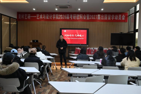 11月25日,艺术与设计学院在一站式社区学生中心多功能会议室举行2026届考研慰问。学院副院长许海峰、党总支副书记孔令霞、学工办主任兼团委书记徐丹与26届考研学子齐聚一堂,共送关怀与鼓励。