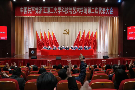 12月18日下午,中国共产党浙江理工大学科技与艺术学院第二次代表大会在学生活动中心小剧场胜利闭幕。
