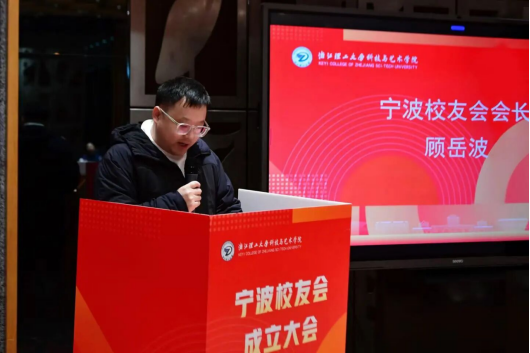 宁波校友会首届会长顾岳波作表态发言。他表示,将牢记使命、履职尽责,以服务校友为核心任务,健全组织架构、完善服务机制,搭建校友交流平台,让校友会真正成为校友们的“避风港”与“加油站”。