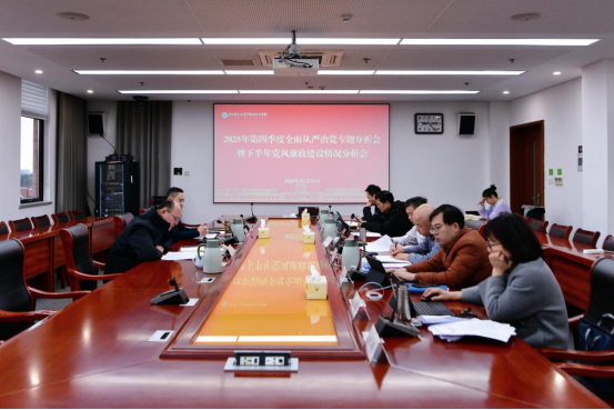 12月31日上午,学院党委书记陈德虎主持召开2025年第四季度全面从严治党专题分析会暨下半年党风廉政建设情况分析会。院长胡琦,纪委书记王吴芳,党委副书记方水明,副院长李传莹、阳盛益参加会议。