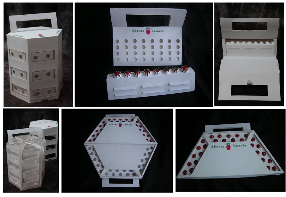 “樱桃番茄”包装设计作品主要从樱桃番茄的外形和颜色着手,还有从它的侧面和上下两个面来展现,包装的通透性让消费者在购买时更有安全感。盒子折叠后和手提包的结合也可以让消费者携带更方便。同时在作品中结合了波点元素,显得更时尚。色无论是和亮眼的红还是清新的绿搭配都能让人的视觉感到舒心,将它们融为一体的强烈的对比色又衬托了包装的独特性。