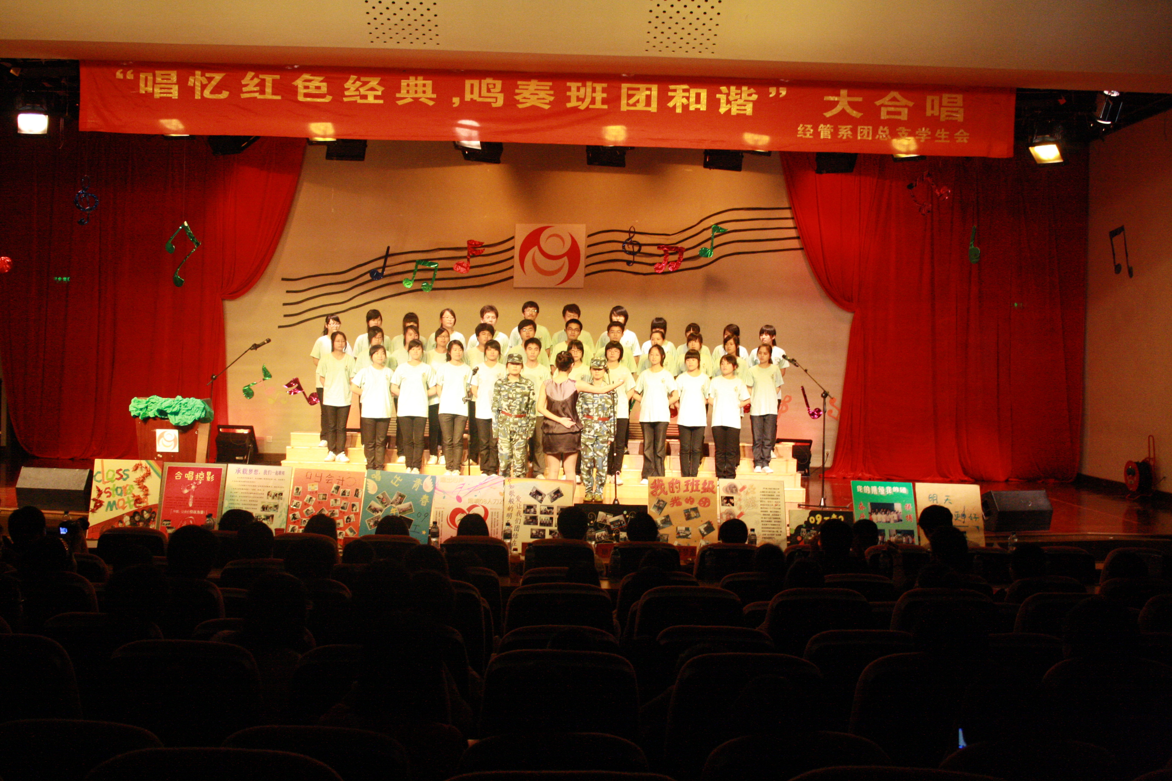 为了进一步促进我院大学生素质教育,彰显学生积极向上的精神风貌,丰富活跃学生的课余生活。5月28日晚,由经管系团总支、学生会举办的主题为“唱响红色经典,鸣奏班团和谐”的大合唱决赛在小剧场拉开帷幕。