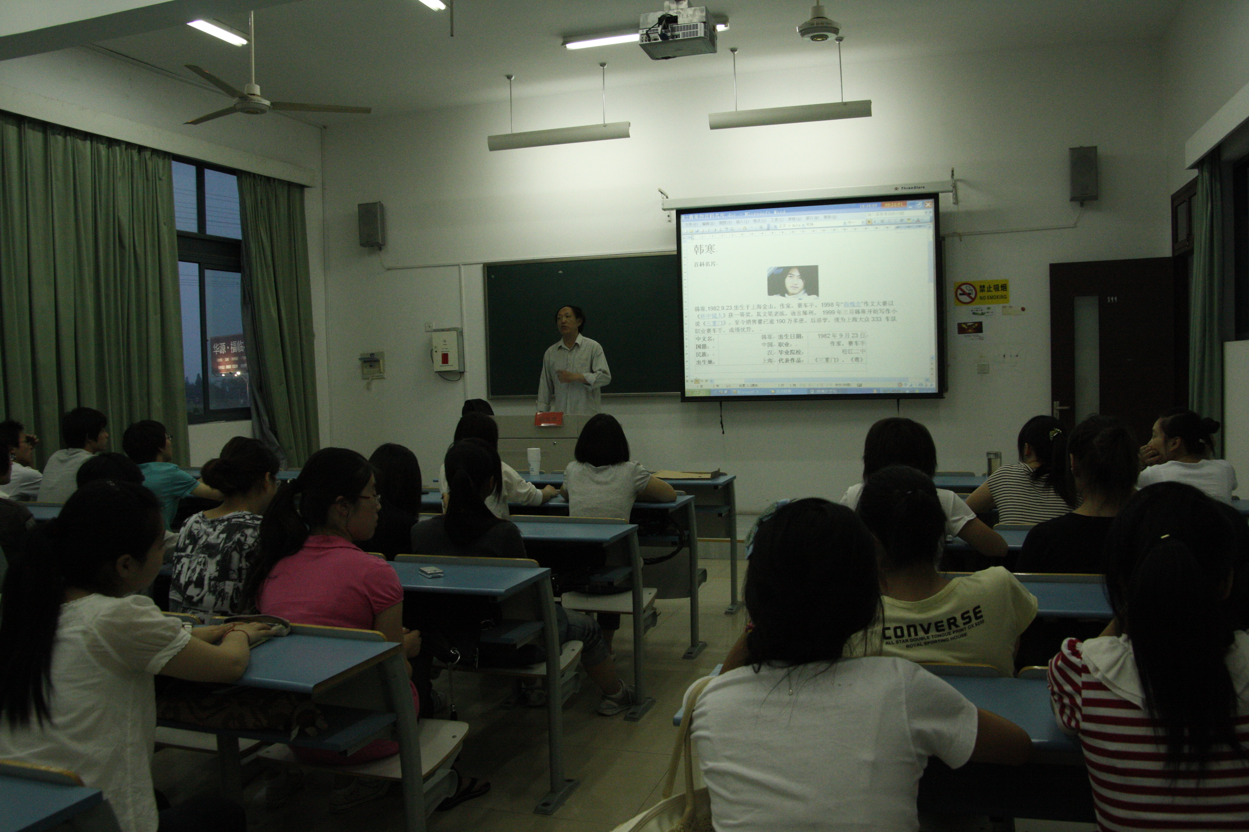 5月27日晚,著名作家、浙江省杂文学会副会长、中国作家协会会员赵健雄先生为我院学生作了题为我眼中的韩寒的讲座。人文系相关负责人和老师参加了讲座。