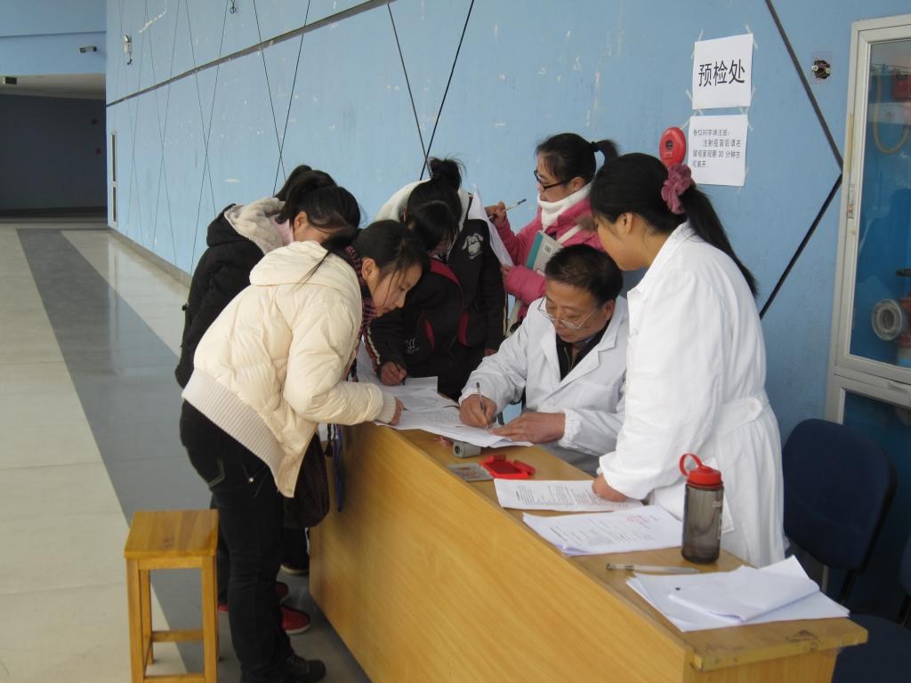 我院高度重视此次疫苗的接种工作。研究制定了接种方案,并多次召开会议进行部署。在接种前给每位师生发放了《甲型H1N1流感疫苗接种告知书》和《甲型H1N1流感疫苗接种知情同意书》。详细阐明了接种甲型H1N1流感疫苗的不良反应、接种禁忌症及注意事项等内容。1月18日,卫生所的黄志刚医师给各系辅导员和学生观察员就有关甲型H1N1流感疫苗接种的注意事项进行了专门的医学培训。接种当天,按照“知情同意、自愿免费”的原则,对需要接受疫苗接种的师生进行了预检。预检符合接种条件者接受了疫苗的接种,接种后在留观室休息30分钟,期间没有出现不良反应的,才能离开。因措施到位,整个接种工作有序、高效、顺利完成。