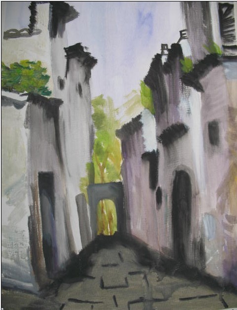 黄婷婷同学的呈坎风景写生作品《小巷一角》