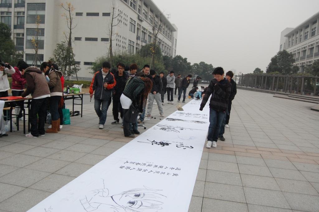 日前,我院白雅居社团发起题为“情系书画,美我万杰”的百米书画大赛,这也是我院第二届社团文化节的重要内容之一。