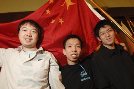 张之洋(右一)所在的团队获世界冠军赛的团队赛冠军时的合影
