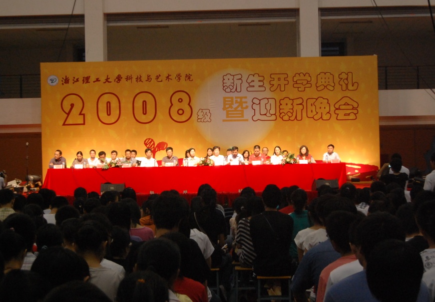 9月6日晚,科技与艺术学院2008级新生开学典礼暨迎新晚会在西城校区体育馆隆重举行。校党委副书记金瑾如、程刚,副校长戴文战、陈建勇,党委委员、组织部长史永安,校长助理朱根弟,学校有关职能部门负责人,科艺学院党政领导、各部门负责人以及系(部)主任等出席典礼并在主席台就座。开学典礼由科艺学院党总支书记兼副院长刘斌主持。