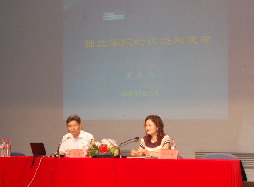 为进一步提高教育教学质量、凸显学院办学特色,促进学院又好又快发展,7月13日,科技与艺术学院在西城校区科学馆小剧场隆重举行2008暑期研讨会。浙江大学城市学院专家咨询委员会执行主任、原浙大城市学院院长、原中国独立学院协作会会长王立人教授作了题为“独立学院的机运与使命”的专题讲座。王教授从高等教育结构的需求空间、应用型本科教育的误区、独立学院的特色优势等几个方面结合实例阐释了我国独立学院发展的机运,指出了独立学院的历史使命——成为在本科高素质应用型人才培养方面迅速崛起、独树一帜的一类“新型高等学府”。