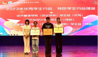 方水明为五四红旗团委、先进团委颁发奖状,王莹为优秀学生分会、特色学生分会颁发奖状。大会表彰了院2023年示范团支部、十佳团干部、十佳团员、十佳志愿者、浙江省大学生艺术节中获奖的集体和个人、志愿服务先进集体。