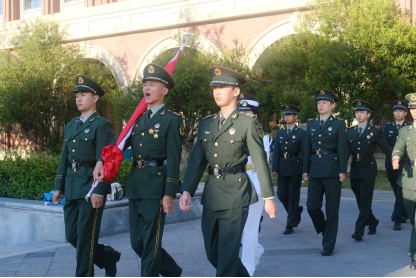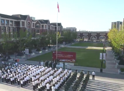 早上七点,气宇轩昂的国旗护卫队迈着整齐划一的步伐,护送着五星红旗正步迈向旗杆。全体师生在庄严的氛围中面向国旗肃立致礼,冉冉升起的五星红旗迎风招展。