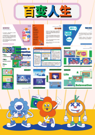 设计说明:在21世纪这样一个高速发展的时代,互联网与人们的生活的关系日益密切。在互联网的潜移默化中,人类社会的生活习惯发生了许多变化。以语言为例,互联网热词不断的出现,并产生了新旧更替。这些热词逐渐渗透进我们的口语,甚至于书面用语之中。通过对网络热词的层层筛选,本作品最终将中心词汇定为“母单花”、“蒲工英”、“橘外人”,并以此为中心主题延伸出项目名称“百变人生”。对“母单花”、“蒲工英”、“橘外人”进行拟人化的操作,由此延伸出三个不同的视角,并以TA们的口吻对人生理念进行简单阐述。