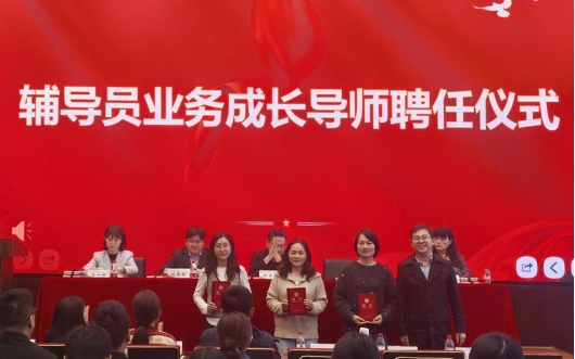 随后,进行学生思政辅导员业务成长导师聘任仪式。方水明为2024年新入职思政辅导员业务成长导师代表颁发聘书。