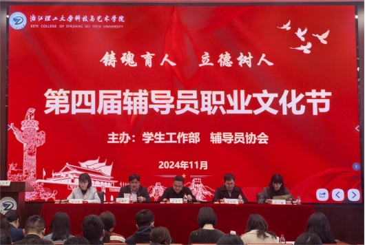 11月12日下午,我院在小报告厅举行“青苗”计划——辅导员素质提升工程暨浙江理工大学科技与艺术学院第四届辅导员职业文化节开幕式。学院党委书记陈德虎,党委副书记方水明出席开幕式,教务部、团委负责人,全体辅导员和新辅导员业务成长导师参加开幕式。开幕式由学工部部长沈荣根主持。