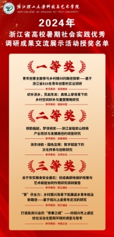 近日,在团省委公布的2024年浙江省高校暑期社会实践优秀调研成果交流展示活动拟授奖名单中,我院推报的10个项目有7个获奖,喜获一等奖2个、二等奖2个、三等奖3个,获奖级别和数量上均领先全省同类院校,创造该项赛事中我院历史最好成绩。