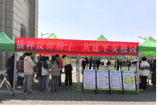 钟楼广场反诈宣传摊位上人头攒动,公共事务管理部(安全保卫部)、综管办、派出所工作人员与院安防社志愿者一起向师生普及反诈知识,分发反诈宣传册和反诈宣传品,介绍国家反诈中心APP的安装和使用。派出所警官结合自身经验以案说法进行宣讲,通过直观数据展示、典型案例分析、有奖抢答等方式,向在场师生深入剖析了电信网络诈骗的各种手段,尤其是针对大学生群体常见的电信诈骗类型,如网络刷单诈骗、网络购物诈骗、网络交友诈骗等方面进行了详细讲解,提醒师生提升自我保护意识,加强个人信息安全防护,有效防范和处理电信网络诈骗。