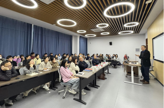 王万良以“人工智能通识课程与赋能‘四新’专业建设”为题,从人工智能时代创新人才培养、人工智能通识课程教学理念、教学资源、教学方法及AI赋能“四新”专业五个维度,深入解码“AI+教育”的破局之道。他从政策高度到实践落地的系统性洞察,为我院AI教育提供了“方法论”与“路线图”。