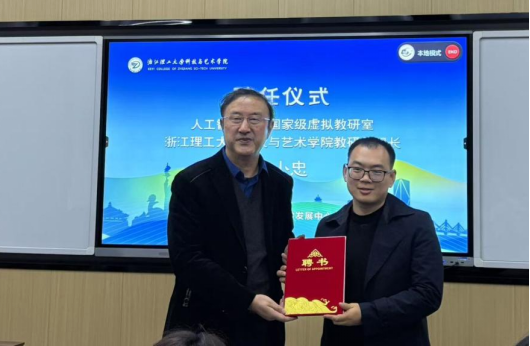 在国家级虚拟教研室框架下,学院成立“人工智能课程国家级虚拟教研室浙江理工大学科技与艺术学院教研组”,由信息技术中心主任鲍小忠担任组长。这不仅是对学院人工智能教研室团队实力的高度认可,更是对学院“人工智能+特色专业”建设路径的有力支撑。会上,王万良为鲍小忠颁发组长聘书。