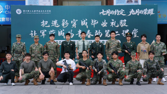 4月17日,由上虞区杭州湾经开区人武部、学院学生工作部(人民武装部)、院退役大学生士兵工作站联合主办,各二级学院退役大学生士兵工作站协办的“把迷彩穿成毕业礼服:让军营成为青春的第二课堂”征兵宣传活动在钟楼广场火热开展。活动以沉浸式体验与国防教育深度融合的形式,吸引近千名师生参与,点燃学子携笔从戎、报效祖国的青春热血。