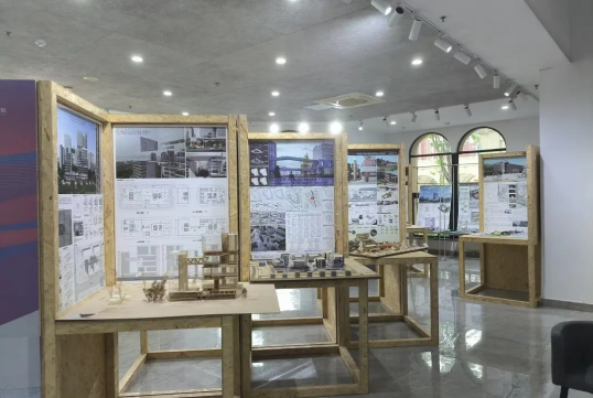 本次建筑设计展以“具身共振” 为主题,精心划分为三个篇章。“共创协振” 篇章呈现了建工师生团队与上虞多个乡镇街道紧密合作,深度融合联动绘制的设计方案,展现了高校与地方协同发展的创新实践;“翼启新振” 篇章集中展示了40份建筑学优秀毕业作品,每一份都凝聚着学子们的心血与智慧;“竞界激振” 篇章则生动展现了建筑学子在专业竞技舞台上的卓越实力,同时也映射出建筑教育在培养创新型人才方面取得的丰硕成果。