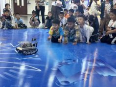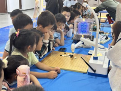 在支部成员的引导下,幼儿园教师及大、中班小朋友走进毕业设计作品展厅。展览以“智能科技·创新未来”为主题,集中展示了自动化、人工智能、物联网等领域的二十余件学生作品。支部成员们结合幼儿认知特点,用生动易懂的语言讲解“五子棋对弈机器人”、“基于STM32的物料分拣系统”、“基于NAT穿透的环境监测图传小车”等贴近生活的大学生科技创意作品。幼儿园教师纷纷表示,这些兼具实用性与趣味性的设计为幼儿教育场景的科技化提供了灵感和启发。