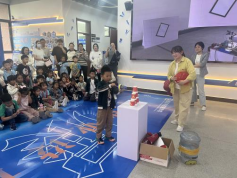 展厅参观结束后,支部安排了“科学启蒙体验活动”。陈天琦老师带领小朋友参与“空气炮”“伯努利原理”“纸杯电话”等趣味实验,通过观察、动手和互动问答让孩子们在游戏中感受声、空气、力、大气压等科学现象的奇妙。活动现场,小朋友们兴奋地参与实验,不时发出惊叹:“原来隔空可以打倒纸杯!”“往中间吹气,两个气球是会靠拢的!”“纸杯电话可以讲悄悄话”......幼儿园教师全程观摩记录,并与支部教师就如何将简单科技原理融入幼儿课程展开交流。